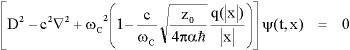 Here are examples of the Modulated Klein-Gordon (MKG) equation with the units scales, including charge, explicit in their conventional form and omitting the magnetic terms as unnecessary for a simple static model of an atomic system. This omission would affect resonant frequencies (c.f. Lamb shift), but not the value of the charge quantum.